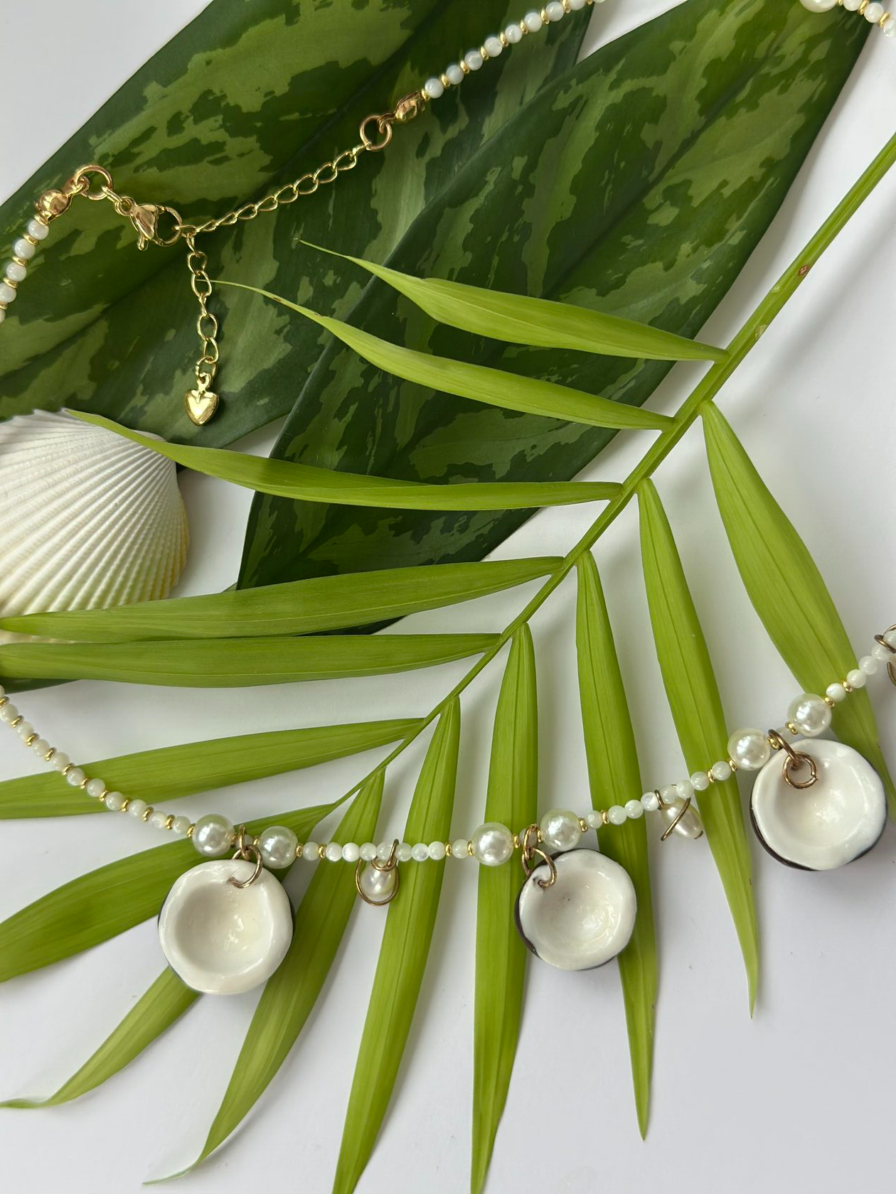 Кокосы из полимерной глины. Бусины из натурального перламутра. Натуральный речной жемчуг. Фурнитура корейская. Металл - латунь, медицинский сплав. Стойкое покрытие - родий, позолота 18К. Ручная работа. Срок изготовления изделия 7-14 дней. Рекомендации по уходу за изделием: