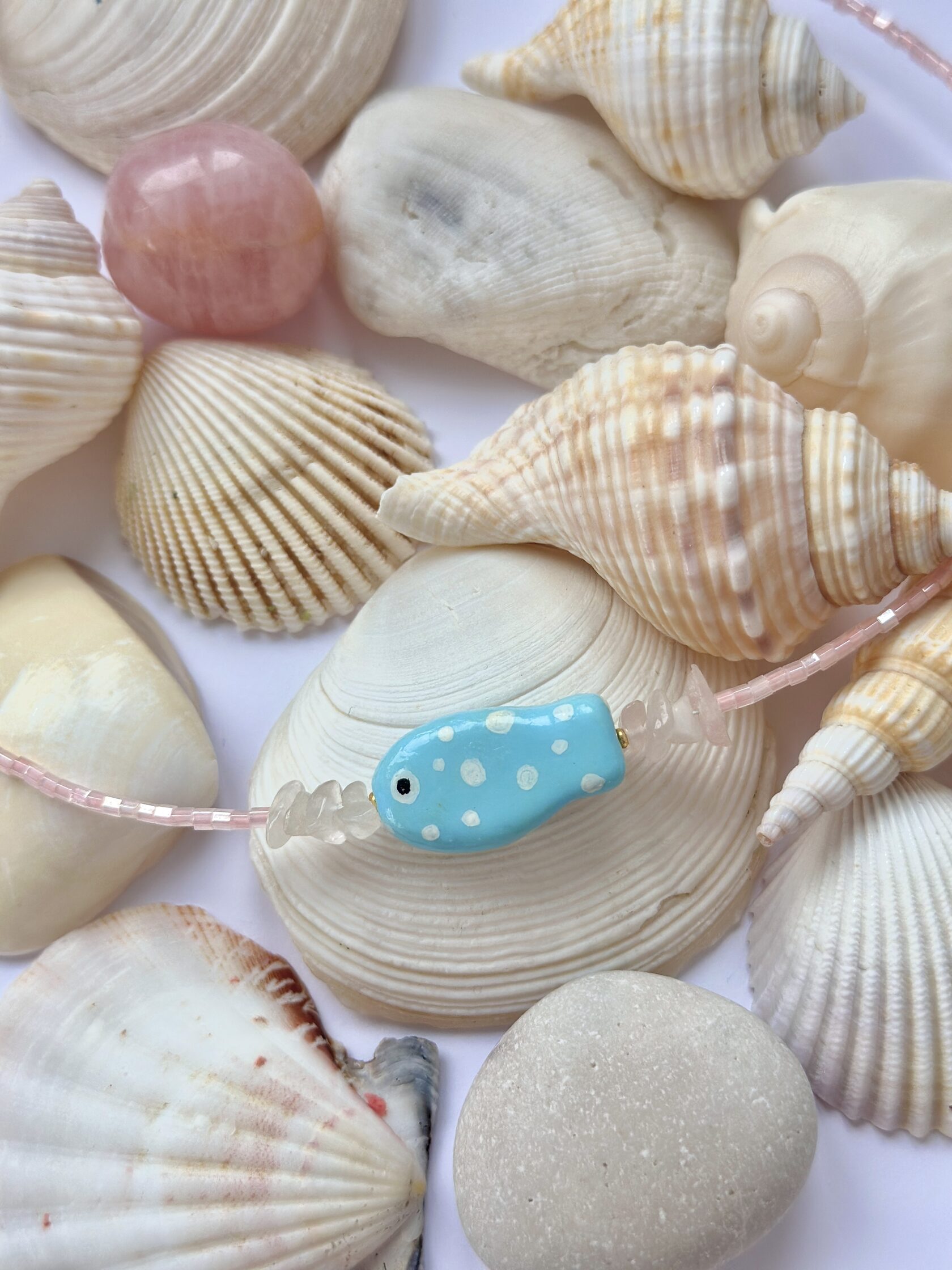Рыбка из полимерной глины. Бисер "TOHO". Розовый кварц. Фурнитура корейская. Металл - латунь, медицинский сплав. Стойкое покрытие - родий, позолота 18К. Ручная работа. Срок изготовления изделия 7-14 дней. Рекомендации по уходу за изделием: